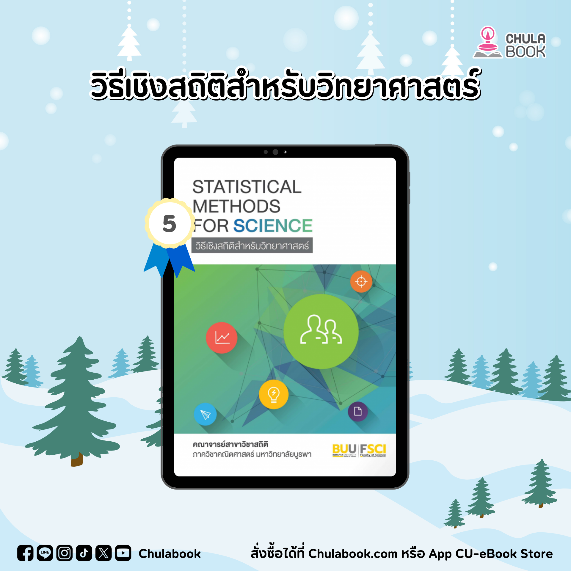 คู่มือเล่มแรกสำหรับผู้ที่สนใจการใช้สถิติในการวิเคราะห์ข้อมูล ไม่ว่าจะเป็นนักเรียน นักศึกษา นักวิจัยที่เพิ่งเริ่มต้น และผู้สนใจทั่วไป หนังสือเล่มนี้จะเริ่มตั้งแต่แนะนำให้คุณได้รู้จักข้อมูล การแจกแจงความน่าจะเป็นของข้อมูล การประมาณค่าพารามิเตอร์ การทดสอบสมมติฐาน ทั้ง 1 กลุ่มและ 2 กลุ่ม สำหรับข้อมูลเชิงปริมาณและข้อมูลเชิงคุณภาพ เนื้อหาจะสอดแทรกด้วยตัวอย่างที่อธิบายทุกขั้นตอน พร้อมตัวอย่างผลลัพธ์จากการใช้โปรแกรม R ในการวิเคราะห์ข้อมูล เพื่อช่วยคุณให้เข้าใจสถิติขั้นเริ่มต้น และเตรียมพร้อมให้คุณสามารถศึกษาถึงวิธีการทางสถิติที่ลึกซึ้งขึ้นอีกในอนาคต