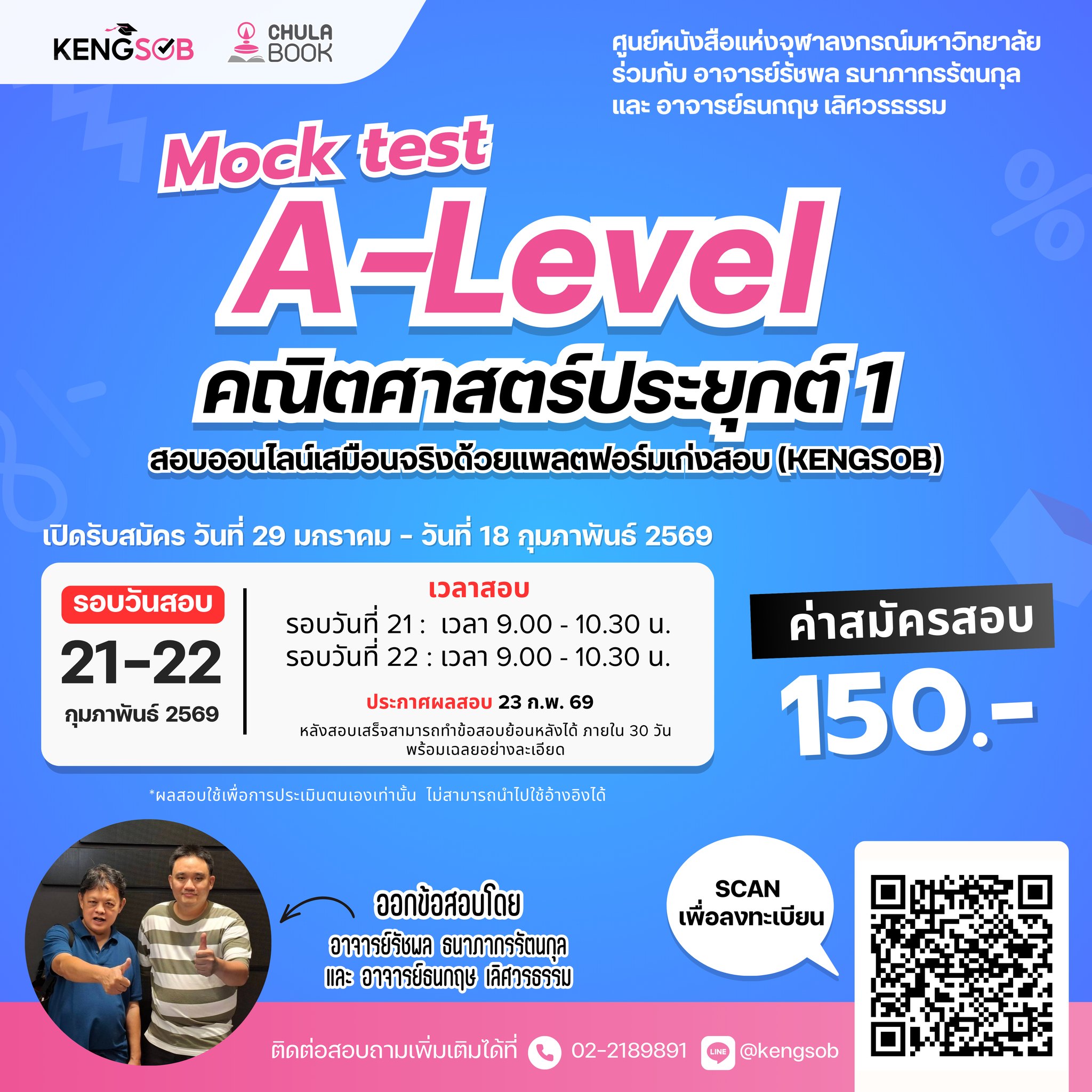 💰 ค่าสมัคร: วิชาละ 150 บาท / รอบ
